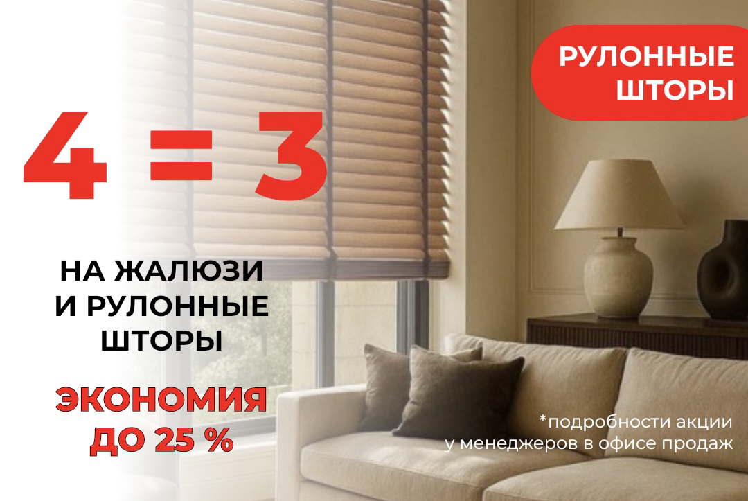 Скидка 25% на заказ жалюзи и рулонных штор, от 4 шт.